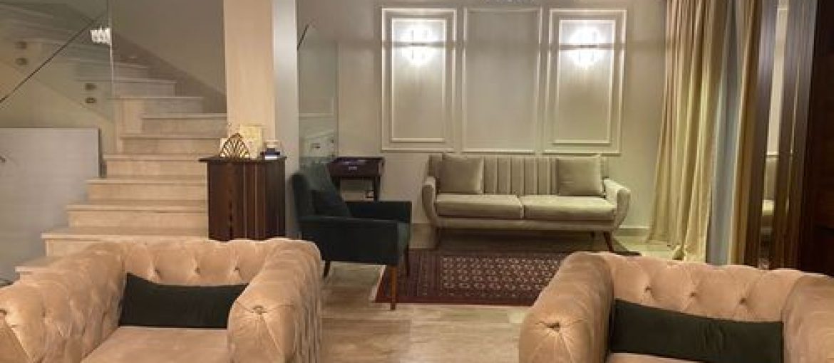 Twinhouse for sale in green 4 compound OctoberFloors: Ground, first & roofBuilt up area: 260mLand: 270m170m garden & 100m open roof Number of bedrooms: 4Number of bathrooms: 4Large Reception 3 PCs  Guest bathroom Electric shutter on all windows and balconies Finishing: Fully finished with Central ACs & kitchen cabinet + appliances